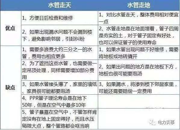 一般常規的水管布線分為走頂和走地兩種,下面我們來比較一下兩種的優缺點。
